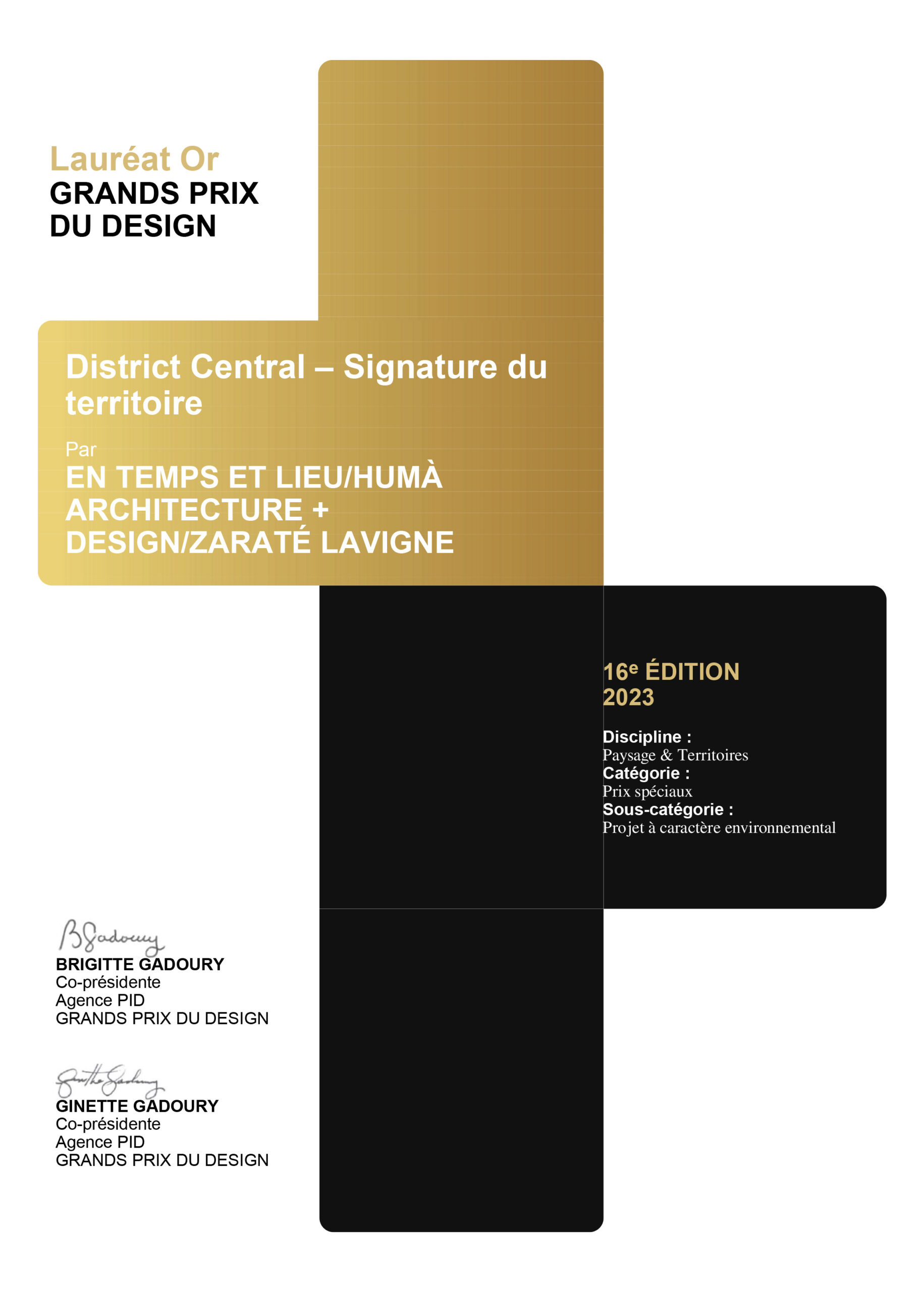 Le projet SIGNATURE DU TERRITOIRE DU DISTRICT CENTRAL est lauréat dans deux catégories pour la 16e édition au Grand Prix du Design!